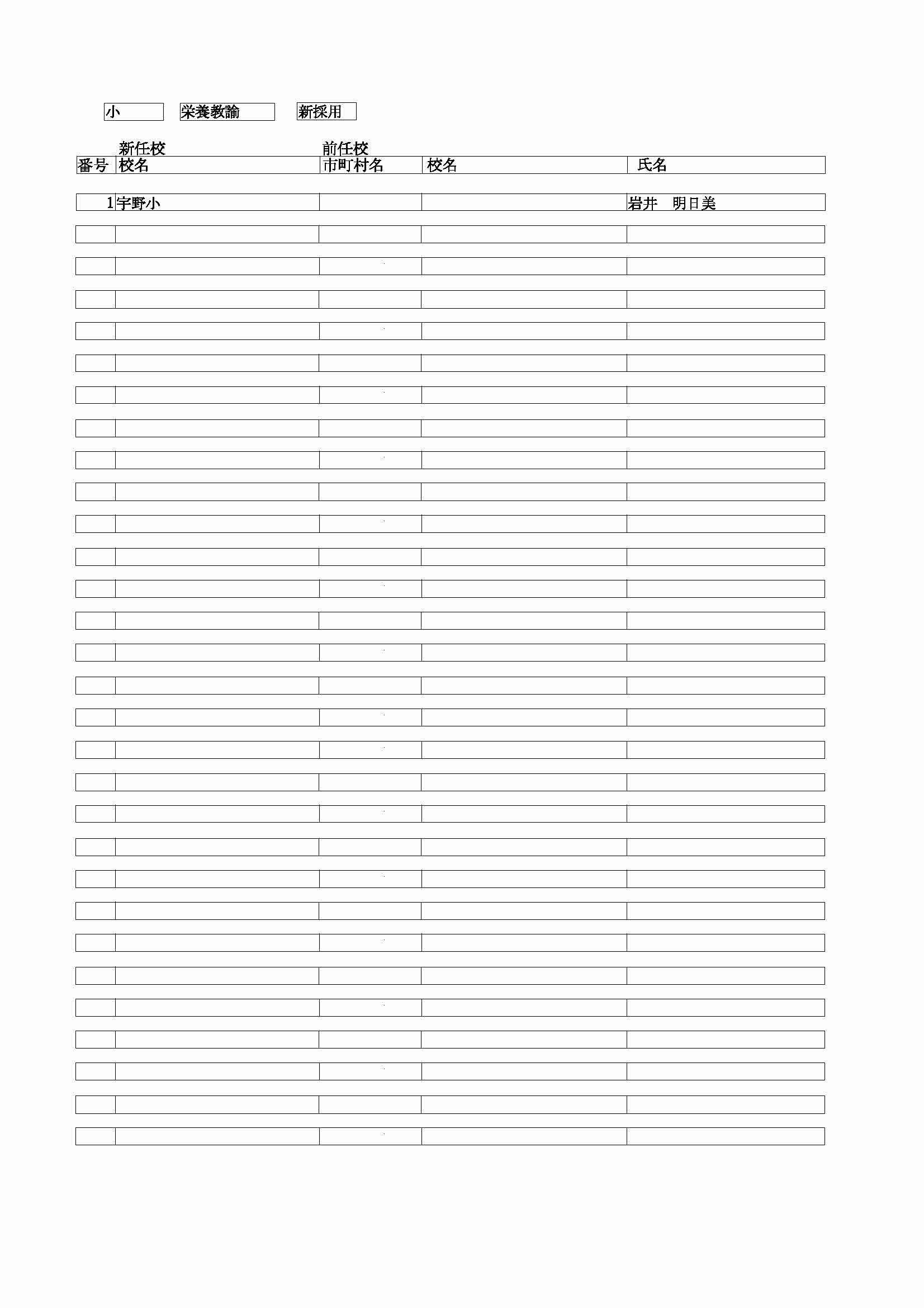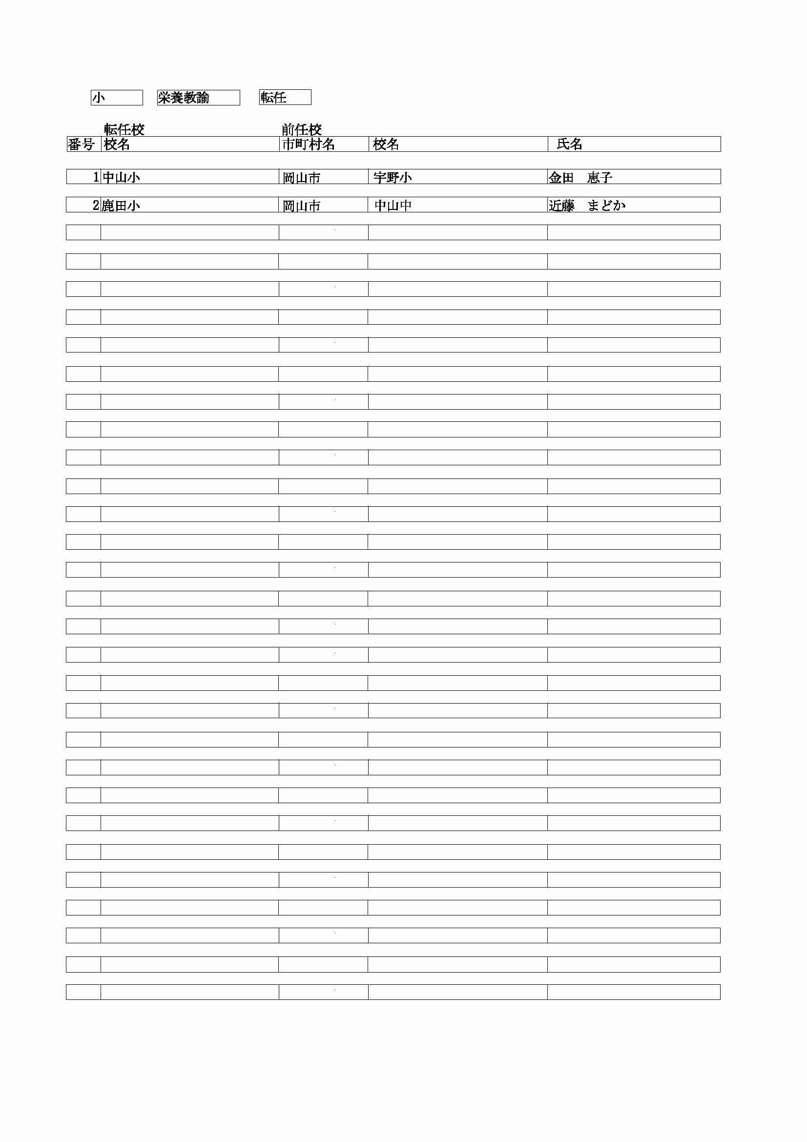 <小学校 栄養教諭 転任>( )内は前任校