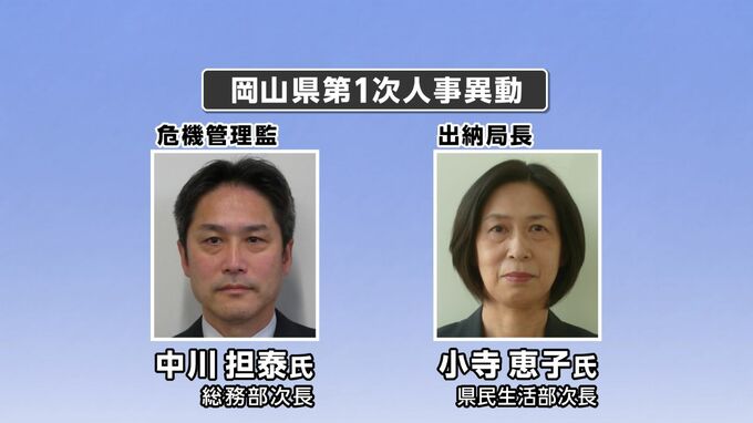 危機管理監に中川担泰・総務部次長が、出納局長に小寺恵子・県民生活部次長が就任します。