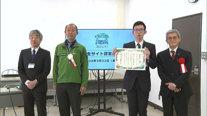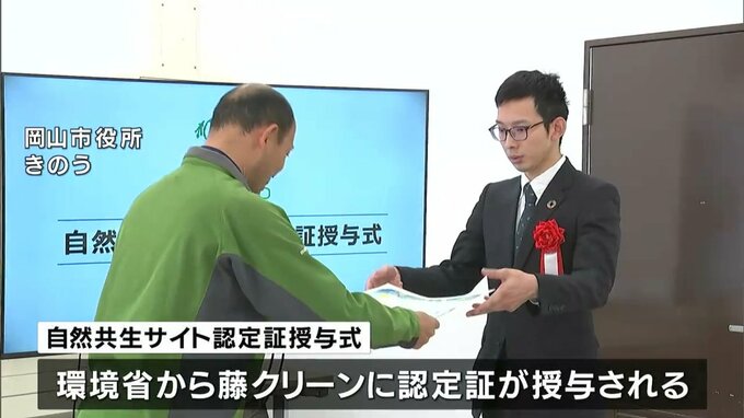 民間の取り組みによって、生物多様性の保全が図られている区域「自然共生サイト」に岡山市の企業が整備する庭園が選ばれ、環境省から認定証が授与されました。