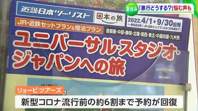 行動制限がないこの夏、旅行代理店では新型コロナ流行前の約6割まで予約数が回復していて、行先として沖縄や北海道が好まれる傾向だといいます。