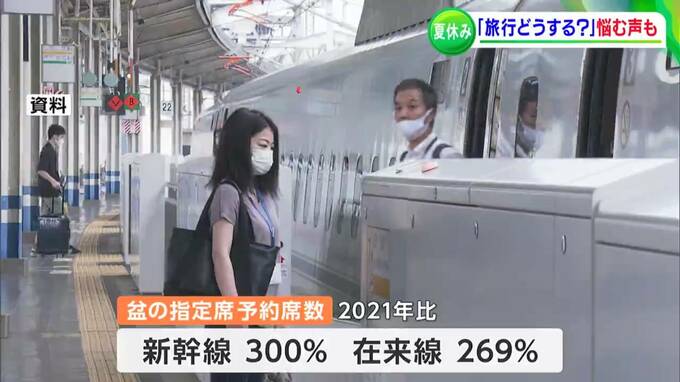 JRでも盆休み期間の予約席数は、新幹線で去年の3倍、在来線で約2・7倍まで回復しています。行動制限がないことや3回目接種が進んでいることが回復につながったとみていますが、ここにきての感染再拡大が影響してくるのではと懸念しています。