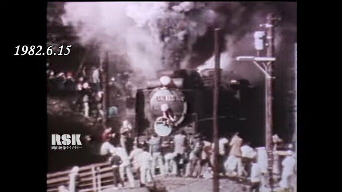 「男はつらいよ」第8作(1971)では、その伯備線を蒸気機関車が【画像⑨】、第32作(1983)では国鉄時代の特急やくも【画像⑩】が走る様子が描かれていて、時代の移り変わりを感じます。