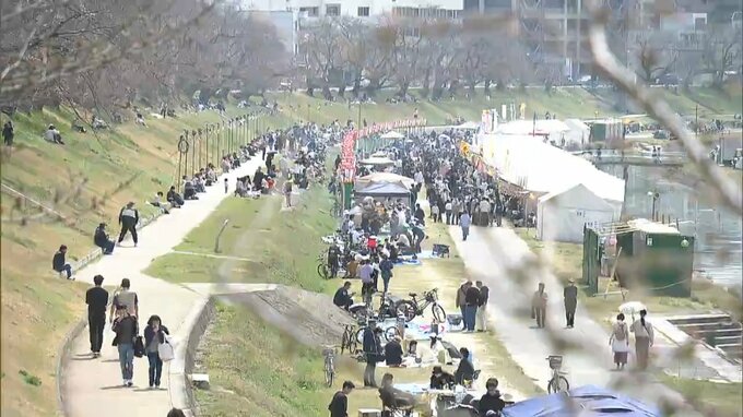 岡山地方気象台はきょう(30日)、岡山市で桜が開花したと発表しました。見ごろはもう少し先になりそうですが、昨日(29日)から「岡山さくらカーニバル」が行われている旭川の河川敷は大勢の家族連れらで賑わっています。