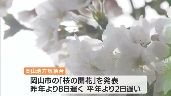 岡山地方気象台はきょう(30日)、岡山市で桜が開花したと発表しました。