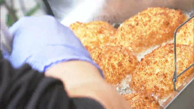 岡山県真庭市蒜山産のジャージー牛をルーに入れたあげたてのカレーパンや、新見市産のぶどうで醸造したワインなど25のブースで自慢の品が並びます。