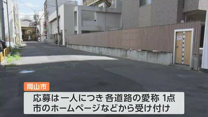 応募は1人につき、各道路の愛称一点で市のホームページなどから受け付けるということです。岡山市は応募の中から選んだ2つの道路の愛称を、10月ごろ発表する予定です。