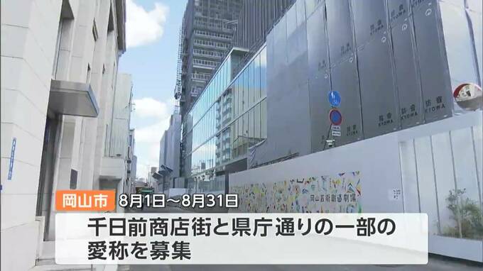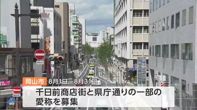 募集するのは、岡山芸術創造劇場の開館に合わせ再整備を行う千日前商店街に繋がる道路と、一車線化したイオンモール岡山から岡山中央郵便局の手前にかけての県庁通りの愛称です。