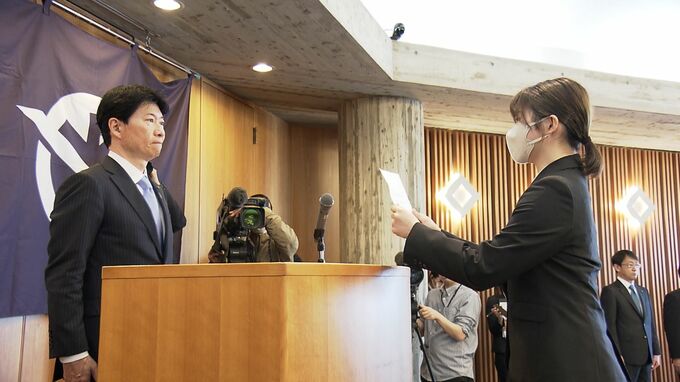 岡山県庁で開かれた辞令交付式には、今年度の新規採用職員144人が集まりました。伊原木知事は「より良い岡山県にしていくため、一緒に頑張りましょう」と訓示。代表者が「誠実かつ公正に職務を執行することを、堅く誓います」と決意を述べました。