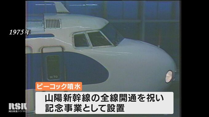 ピーコック噴水は1975年、山陽新幹線の全線開通を祝う記念事業として作られました。