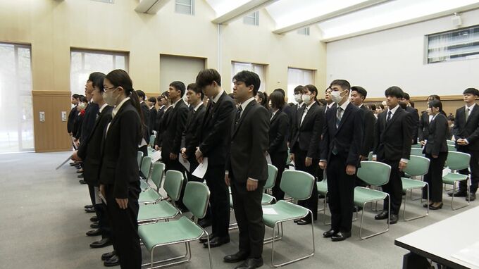 式典に参加した新入社員は、きょう(2日)から2日間、研修でビジネスマナーなどを学ぶということです。