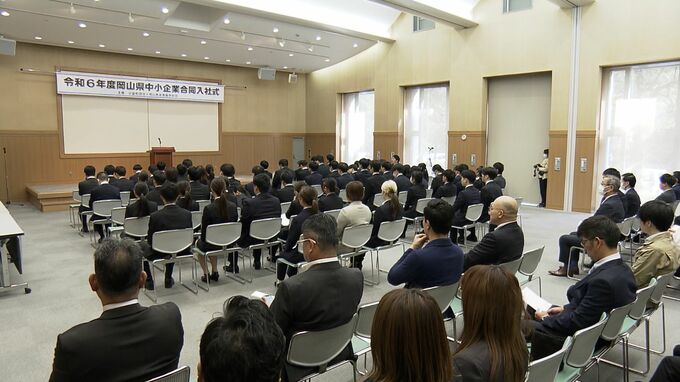 岡山市で県内の中小企業による合同入社式が開かれました。