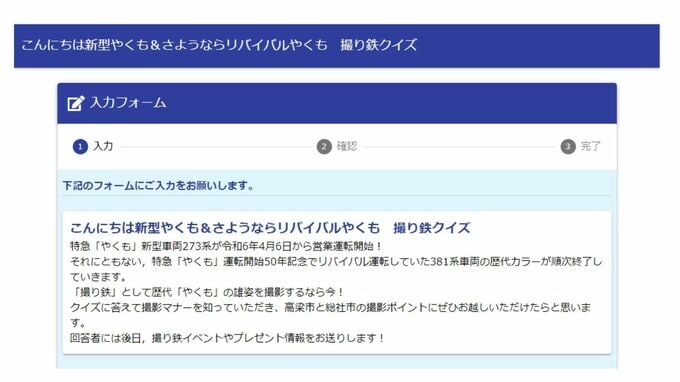 なおこのクイズ、最後に【画像⑧】にある応募者情報を入力すると、今後「撮り鉄イベント」「プレゼント情報」が送られるということで、鉄道ファンにはうれしい企画となっています。最後に入力をお忘れなく。