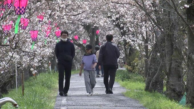 およそ2キロにわたる桜並木は絶景で訪れた人たちは、写真を撮ったりしながら満開目前のサクラを楽しんでいました。