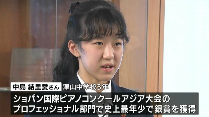 ショパン国際ピアノコンクールのアジア大会で史上最年少の銀賞に輝いた津山市の中学生・中島結里愛さんが伊原木知事に受賞を報告しました。