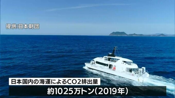 日本国内では、海運で年間1025万トンのCO2が排出されています。プロジェクトでは、2050年までにこれをゼロにすることを目指しています。