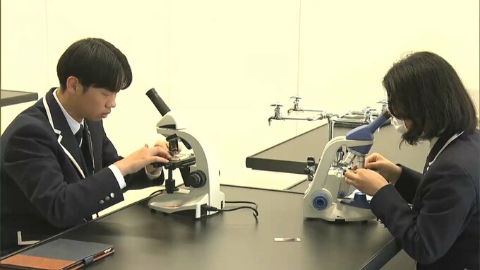新校舎には最新鋭の設備が整った理科室や、生徒同士がクラスを超えて交流できるよう、机やホワイトボードが置かれた広い廊下などがあります。