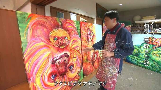 色彩豊かな動物画で知られる自閉症の画家・石村嘉成さんの個展が、19日から天満屋岡山店で始まります。その見どころを紹介するシリーズ企画「なぜ今、石村嘉成なのか」。