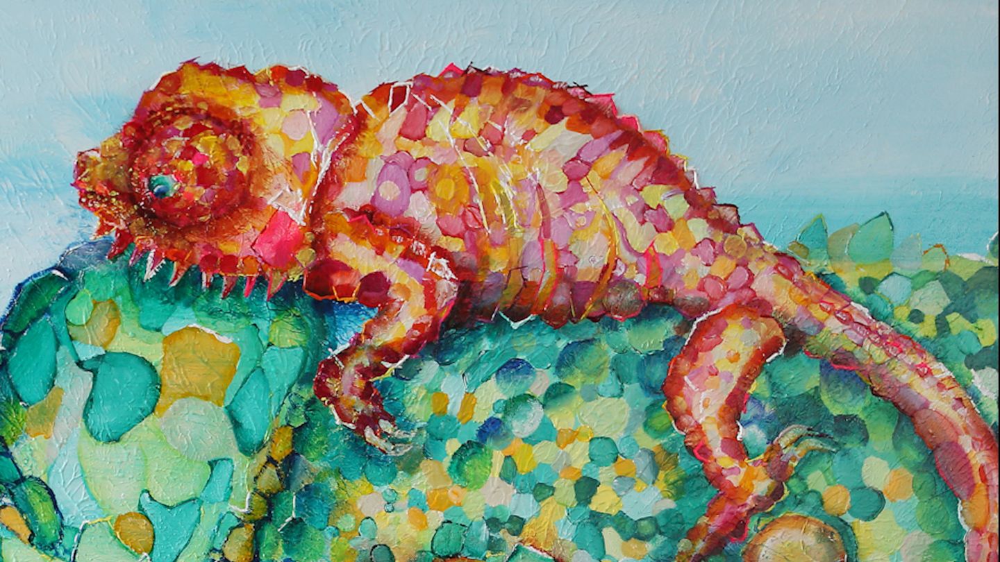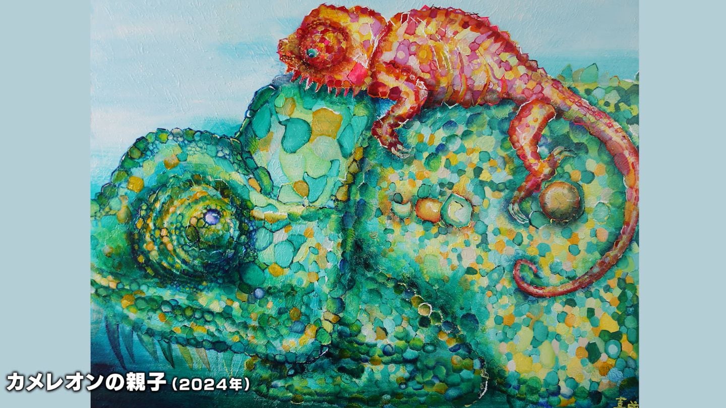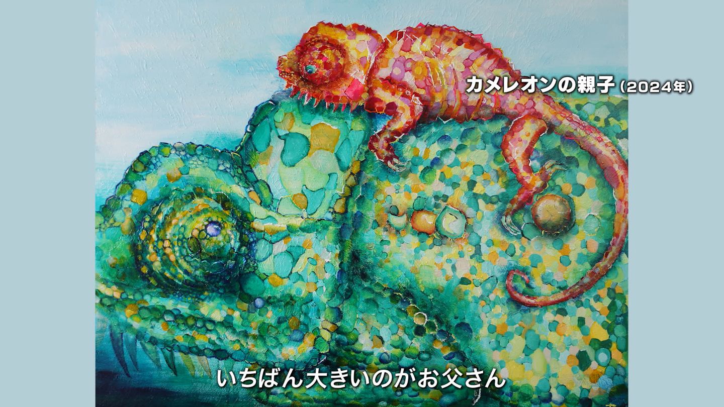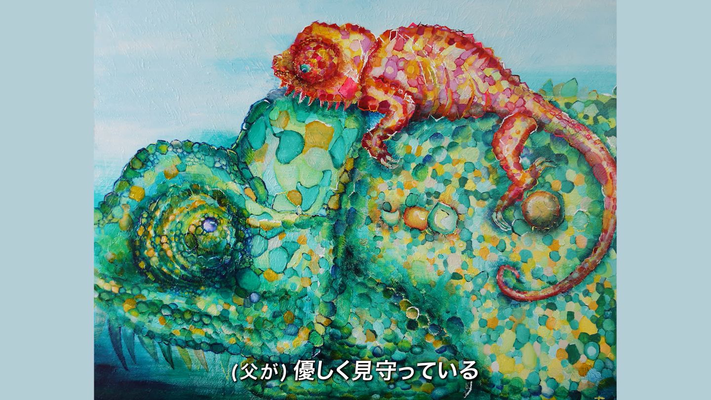嘉成さんが描いたカメレオンの親子には支えてくれる父親・和徳さんへの愛情がたっぷり詰まっています。