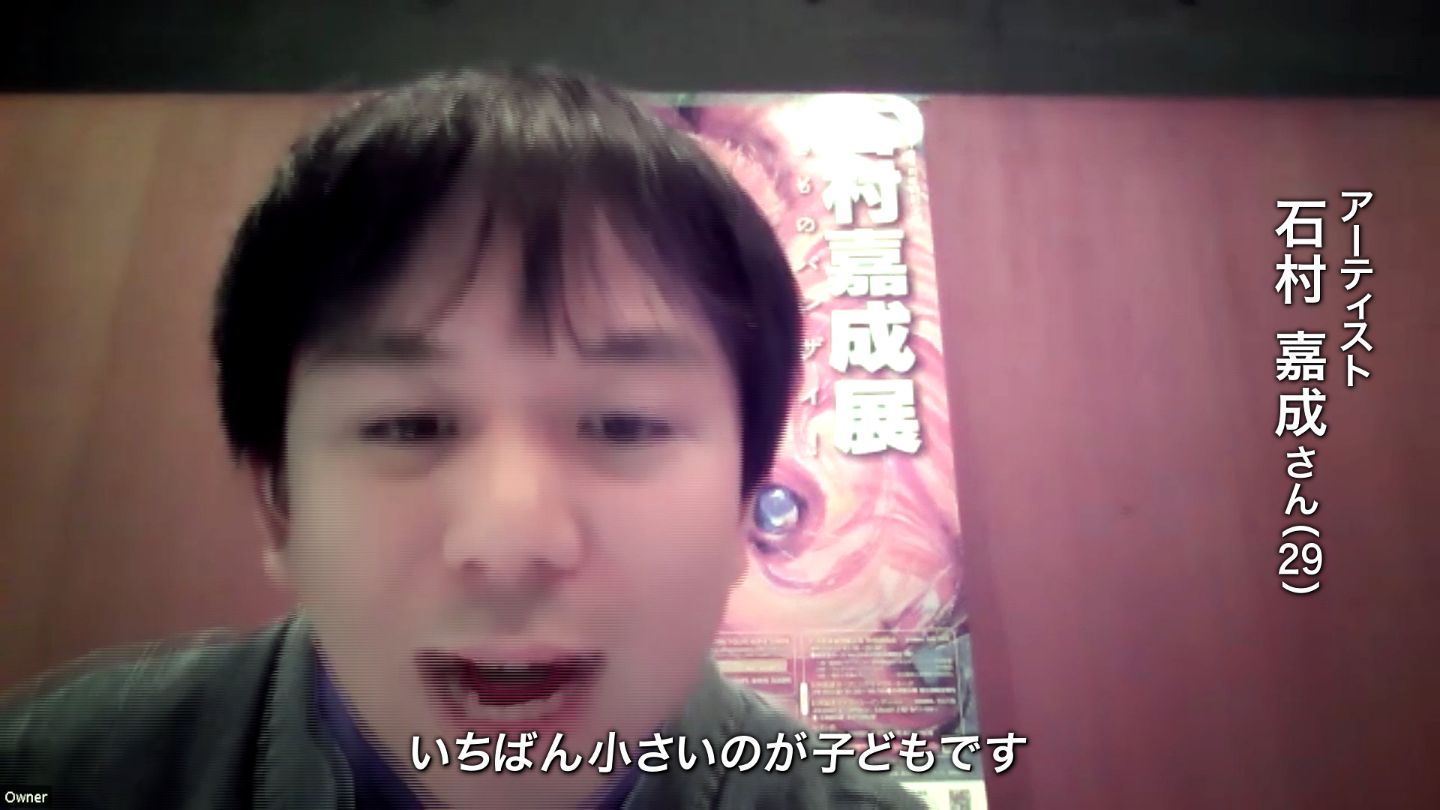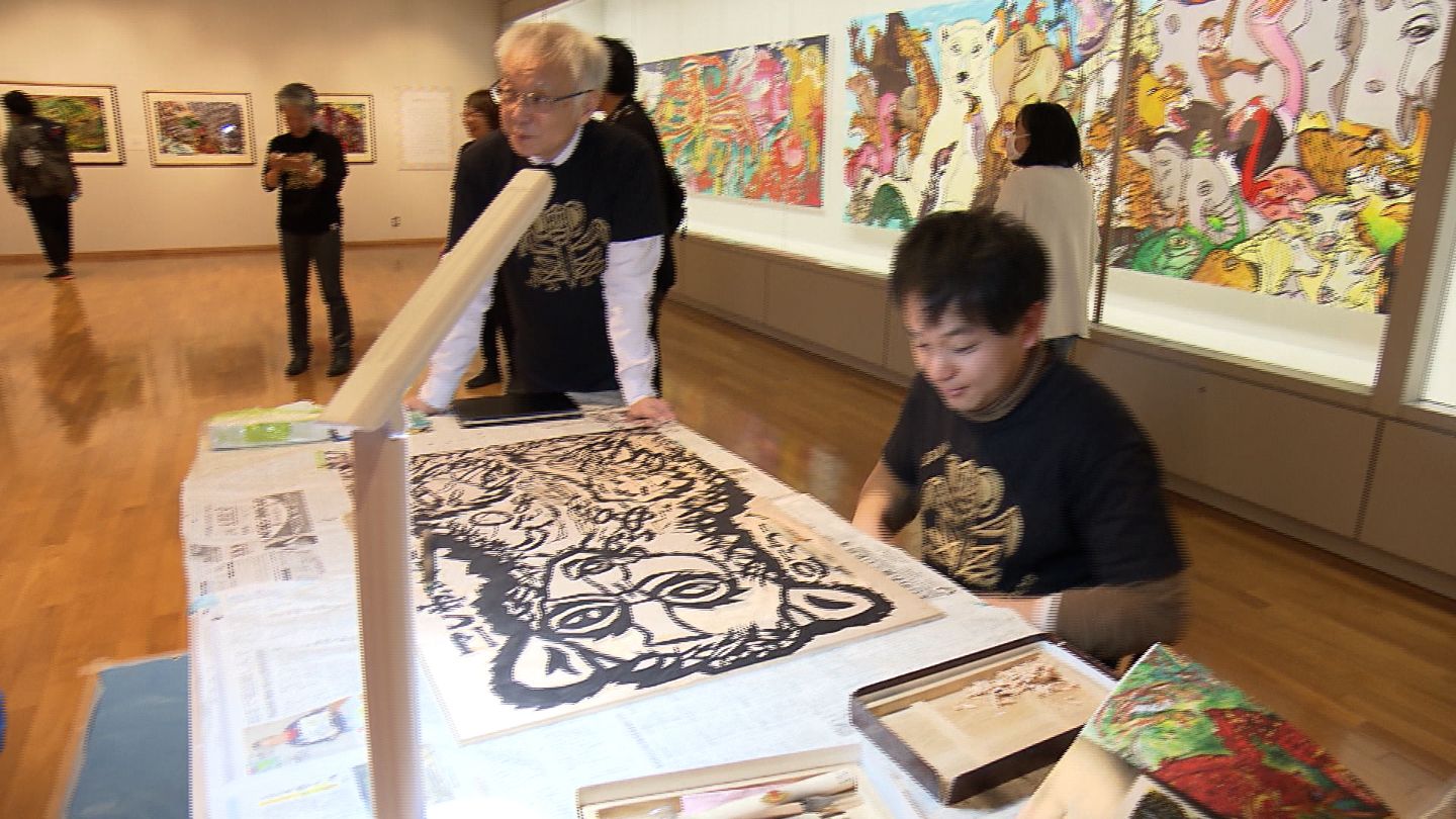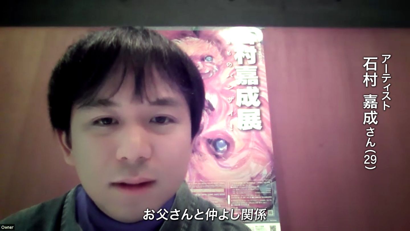 色彩豊かな動物画で知られる自閉症の画家・石村嘉成さんの個展が、19日から天満屋岡山店で始まります。その見どころを紹介するシリーズ企画「なぜ今、石村嘉成なのか」今日(8日)紹介するのは親子の絵です。作品には父親・和徳さんへの思いが込められていました。