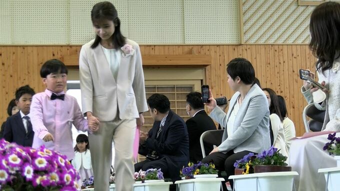 温かい拍手に包まれて1年生が入場です。津山市ではきょう(9日)、すべての公立小学校27校で入学式が行われました。
