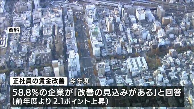 今年度、正社員の賃金を改善する見込みがあるか尋ねたところ、前年度より2.1ポイント高い58.8%の企業が見込みが「ある」と回答しました。