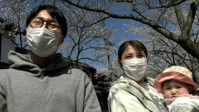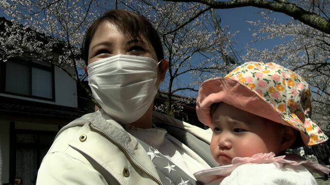 「幸せです。去年はお腹の中だったので無事出産を迎えて今年初めての桜です。」