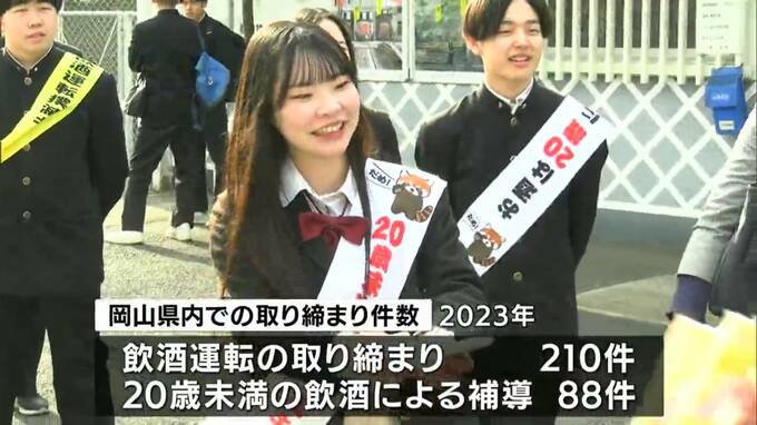飲酒運転や、20歳未満の飲酒をなくそうと、地元の高校生も参加した啓発活動が岡山県津山市で行われました。