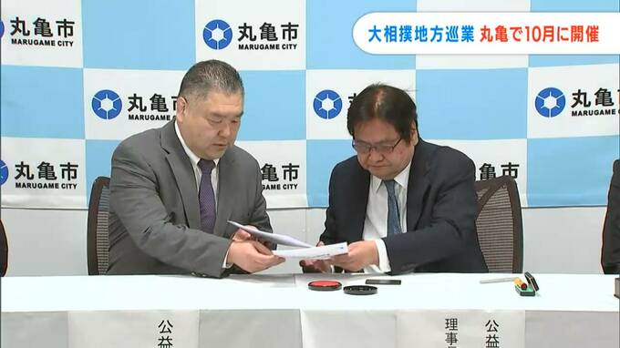 香川県丸亀市で9年ぶりの開催です。大相撲の地方巡業が10月に行われることになり、丸亀市役所で調印式が行われました。香川県出身のあの親方も地元への思いを語りました。