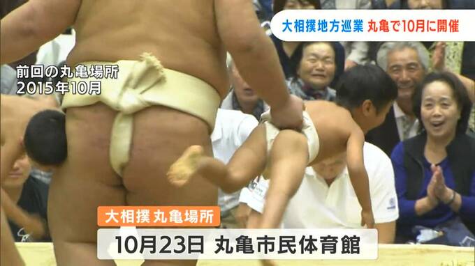 10月23日に丸亀市民体育館で開かれる「丸亀場所」。人気力士の迫力ある取り組みはもちろん、関取と子どもたちの稽古や禁じ手を面白おかしく紹介する「初っ切り(しょっきり)」など、大相撲の魅力を多くの人に伝えます。小学校卒業までを丸亀市で過ごした元関脇琴勇輝の荒磯親方には、特別な思いがあります。
