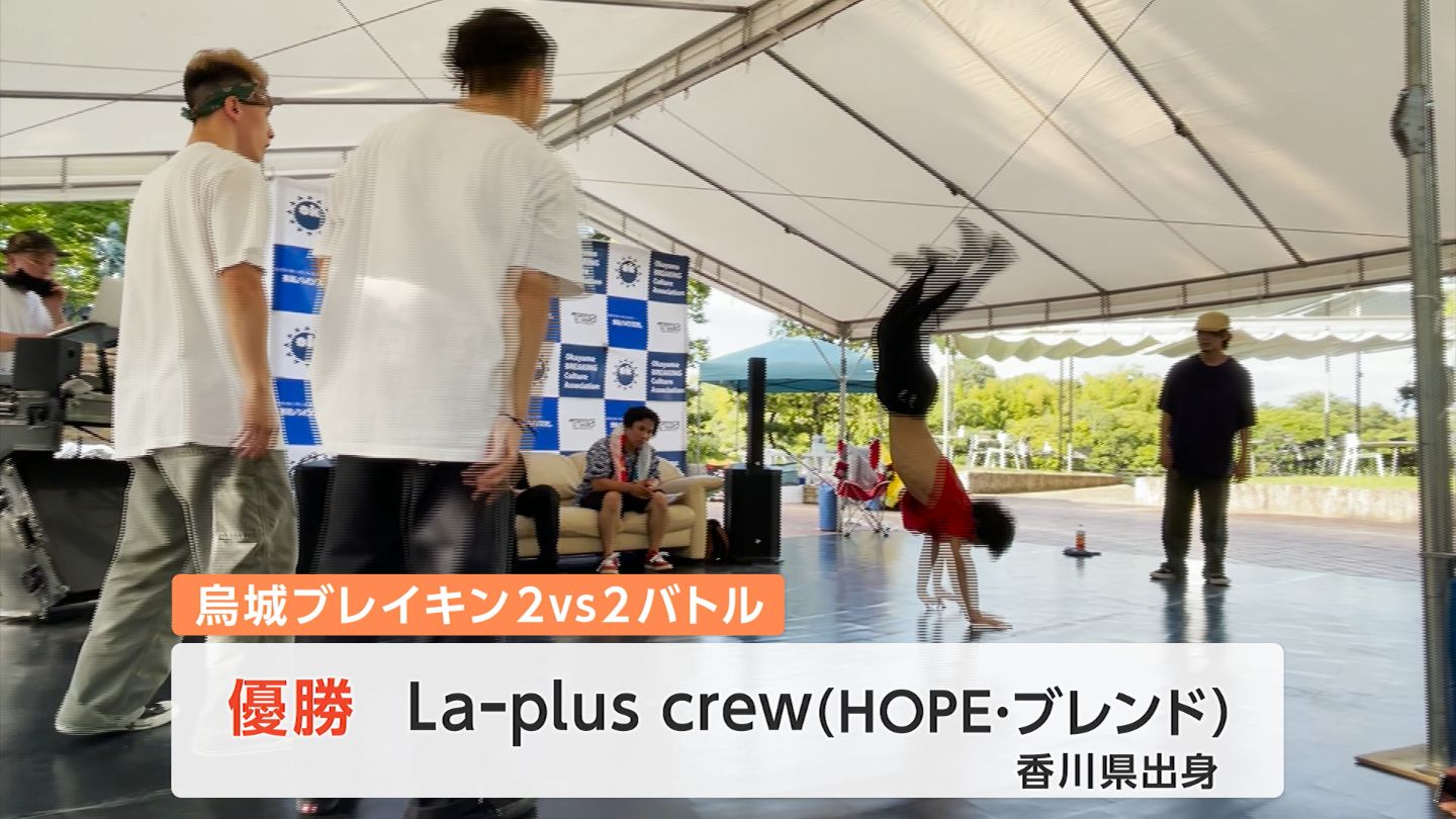 ダンスバトルの決勝は接戦の末、香川県出身のダンサーHOPEとブレンドによる2人組のチームLa―pluscrewが優勝しました。