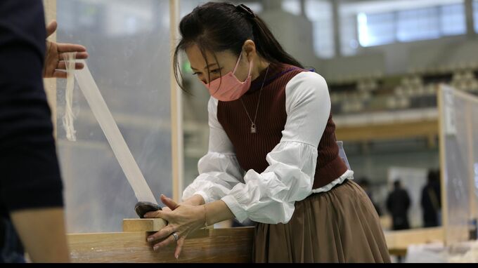 市川さんによると、カンナでヒノキを薄く削るために欠かせないのは、力加減や道具の微調整。当日の湿度にも出来栄えが大きく左右されるといいます。適度に湿り気があるほうが、薄く途切れることなく削れるそうです。