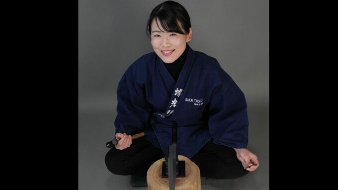 刃物の産地として有名な大阪府堺市からは彫金師の窪田美知子さん(【画像①】窪田さん)、大工が鑿(のみ)や釘を打ったりたたいたりするための道具「玄翁(げんのう)」をつくる新潟県三条市の鍛冶師、道心斎正行(どうしんさい まさつら)さんらが伝統の技を披露します。