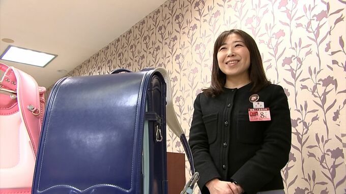 岡山高島屋で女の子に一番人気のカラーはというと…ラベンダーカラー。そのほかミントグリーンやベージュなど近年は淡い色が人気なんだそうです。男の子は定番の黒が一番人気。価格は例年並みで5万4000円からだということです。