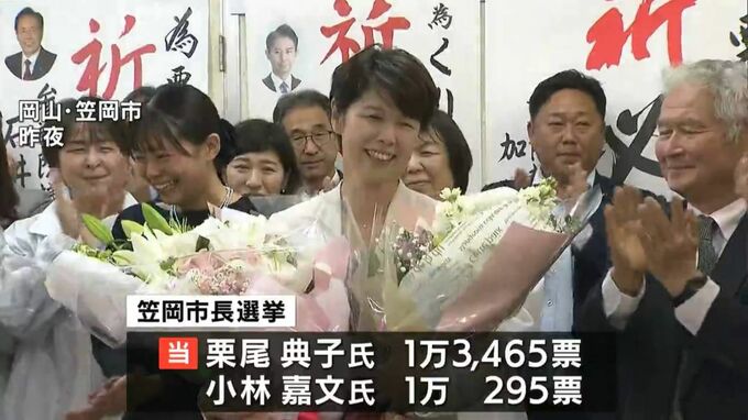 任期満了に伴う笠岡市長選挙の投票が行われ、新人の栗尾典子氏が初当選を果たしました。