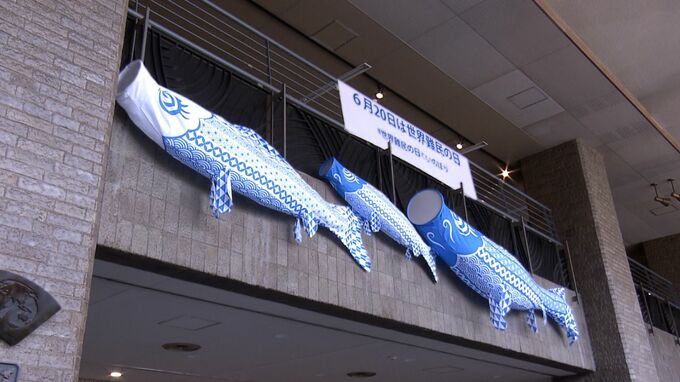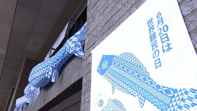 紛争や迫害などに苦しむ子どもたちへの支援の輪を広げようと、6月の「世界難民の日」に向けて、こいのぼりが岡山市役所に掲げられました。
