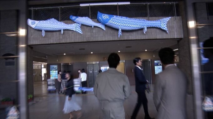 こいのぼりは世界難民の日の6月20日まで岡山市役所に掲げられています。