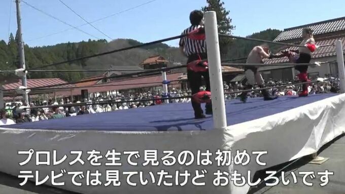 岡山県新庄村。満開の時を迎えた桜並木「がいせん桜」の元で開催されたのは、プロレスです。