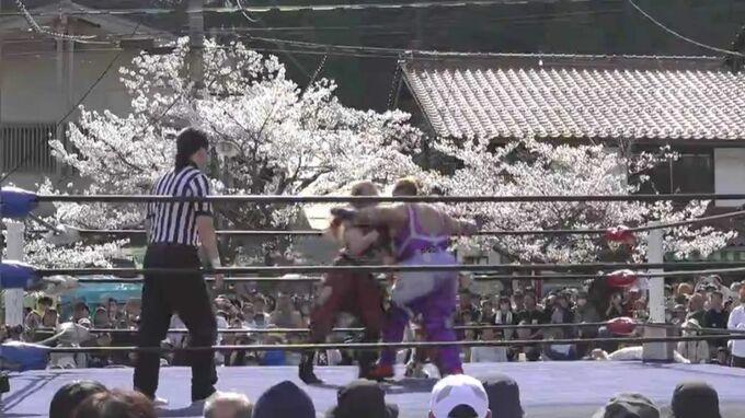 「がいせん桜を見に来ました。これ(プロレス)は予想外です」