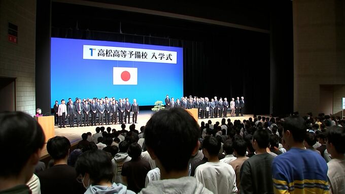 高松高等予備校には今年度、四国を中心に岡山、広島などから622人が入学。そのうち411人が寮で生活しながら学習に専念し、第一志望合格を目指します。入学式では鶴岡校長が生徒を激励しました。