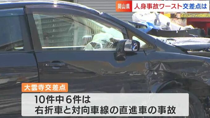 岡山県警は、昨年(2023年)の1年間に、県内で人身事故が多発した交差点「交通事故ワースト交差点」を発表しました。