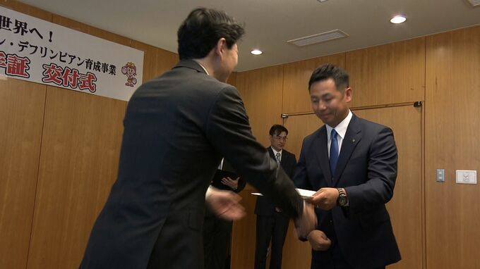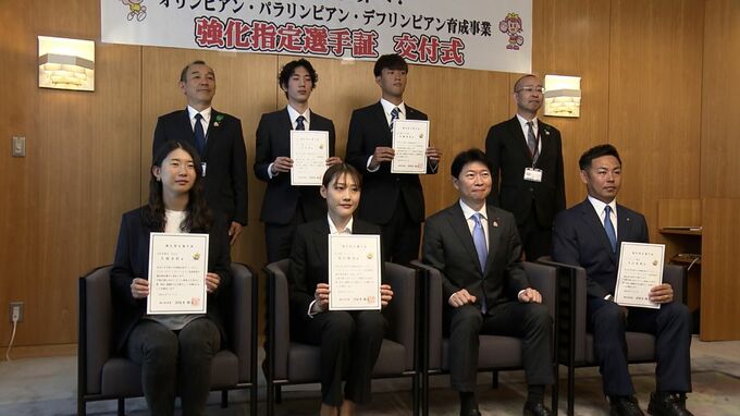 パリ五輪・パラリンピックでの郷土勢の活躍を後押しします。岡山県は、女子マラソンの日本代表に内定している前田穂南選手ら33人を強化指定選手に選び、きょう(17日)はそのうち5人に選手証を手渡しました。