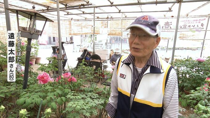 旅行先の新潟県で見た一面の牡丹に魅了され趣味で栽培を始めた遠藤さん。多くの人に牡丹の魅力を知ってもらおうと約25年前に庭を無料開放しました。