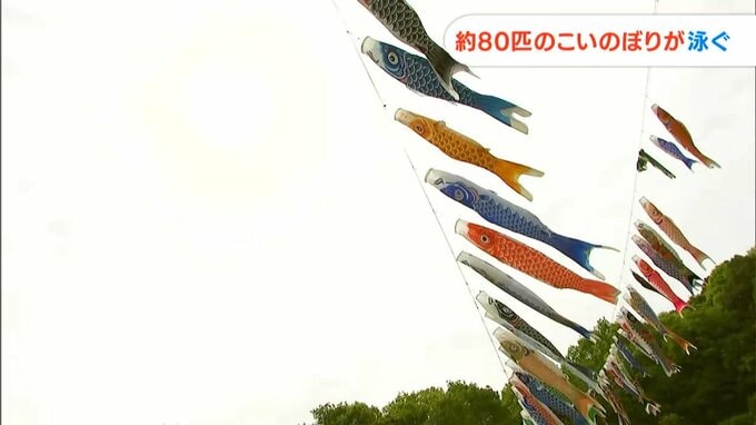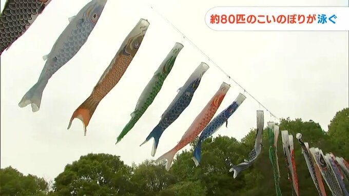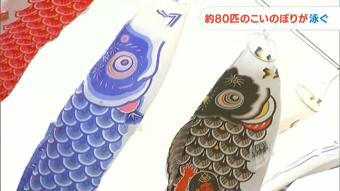 春の空に放たれたのは約80匹のこいのぼりです。