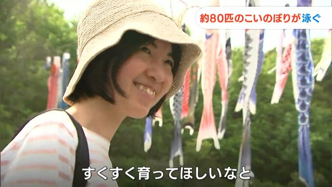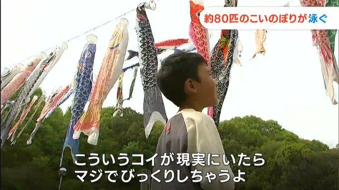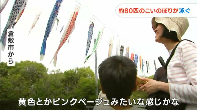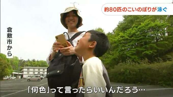 さっそく訪れた親子連れは、元気よく泳ぐこいのぼりを見て…