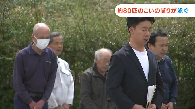 子どもたちの健康や幸せを祈ります。端午の節句を前に岡山市北区の神道山でこいのぼりの放流式が行われました。