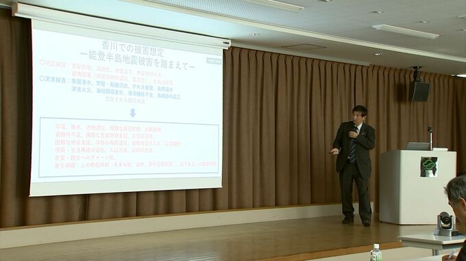 香川大学で能登半島地震被害の調査活動報告会 17日の震度6弱の地震も踏まえ専門家が警鐘 日ごろから備えを 2024年4月18日(木) 19:00 香川 香川大学で能登半島地震の被害について、さまざまな視点から調査した活動報告会が開かれました。震度6弱を観測した昨夜(17日夜)の地震についても触れられました。(香川大学 地域強靭化研究センター 金田義行セ…