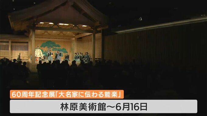 「祝賀能」は林原美術館の開館60周年を記念したもので観世流能楽師・林宗一郎さんらが「羽衣・和合之舞」や「乱・双之舞」などを舞いました。