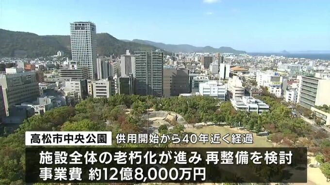 高松市中央公園は、供用開始から40年近くが経過し、施設全体の老朽化が進んでいることから再整備が検討されてきました。事業費は約12億8000万円です。