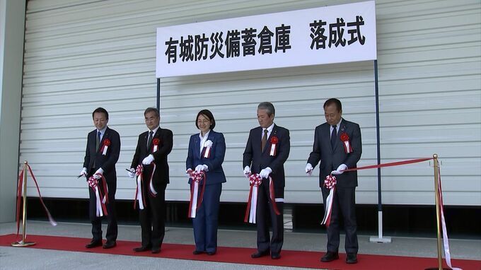 南海トラフ巨大地震や豪雨などの大規模災害の発生に備え、支援物資の備蓄などを行う倉敷市で最大の倉庫が完成し落成式が行われました。