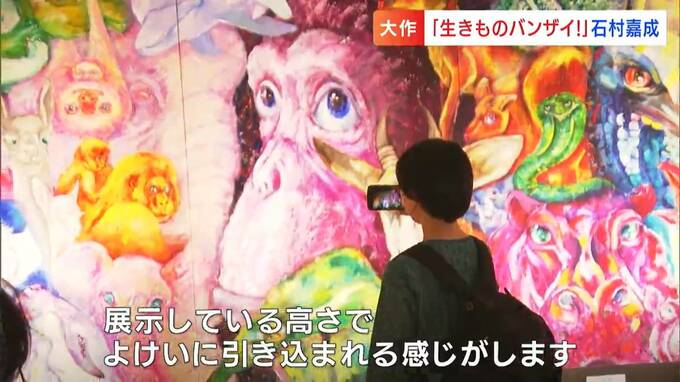 「目線が合うんですよ動物と」自閉症のアーティスト・石村嘉成さんが語る全長26メートルの動物絵巻【岡山】 2024年4月25日(木) 19:00 岡山 天満屋岡山店で好評開催中の「石村嘉成展 生きものバンザイ!」。作品の見どころを石村さん本人が語るシリーズ企画です。今回は、圧巻!全長26メートルにも及ぶ大作です。(石村嘉成さん)「ワオッ!じゃじゃじゃ…